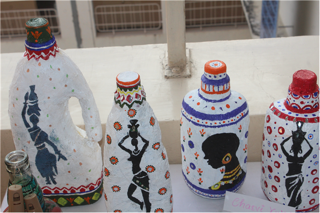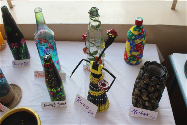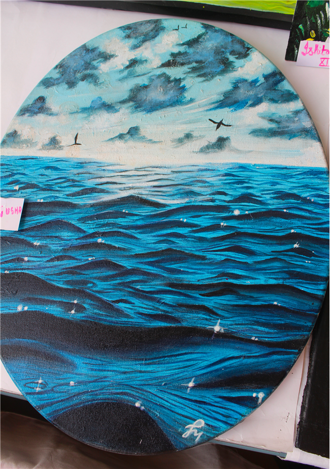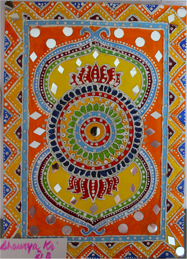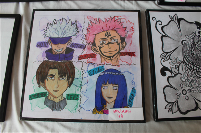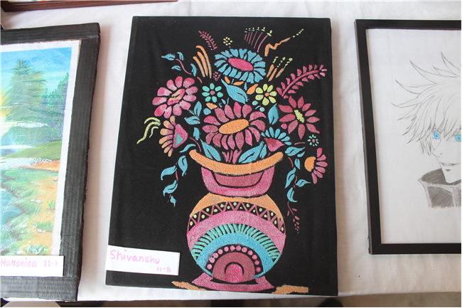 Description: On October 14, 2023, the +2 wing hosted a captivating art exhibition, showcasing a vibrant array of artworks along its corridors. The exhibition featured diverse art forms, including Madhubani paintings, Mandala arts, Warli art, and beautifully adorned decorative pots. Parents and students were in awe of the artistic display and lavished praise upon it. Each art form was a unique expression of deep emotions, carrying its own profound meaning.