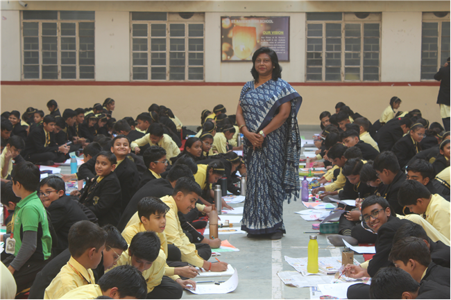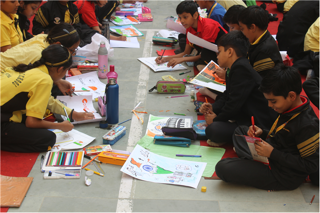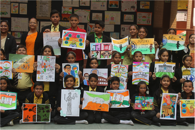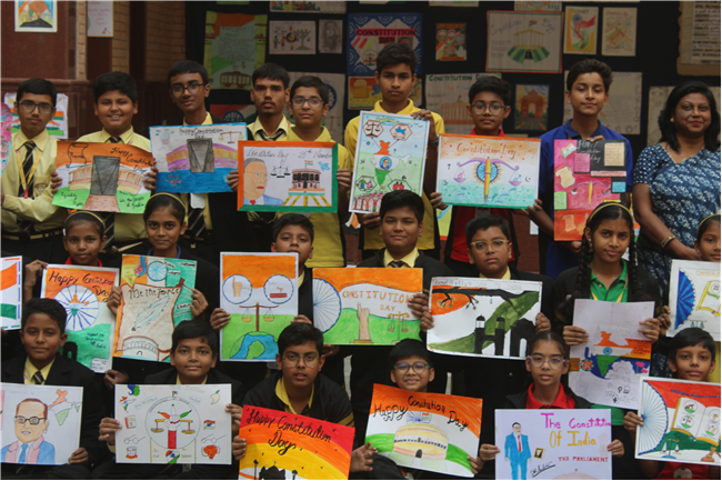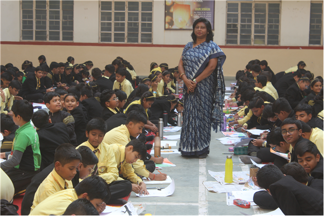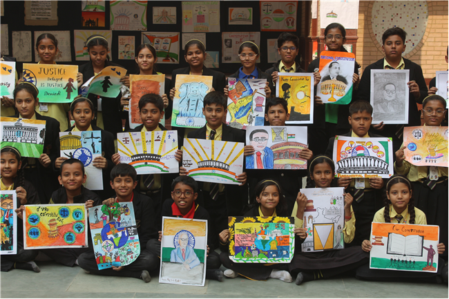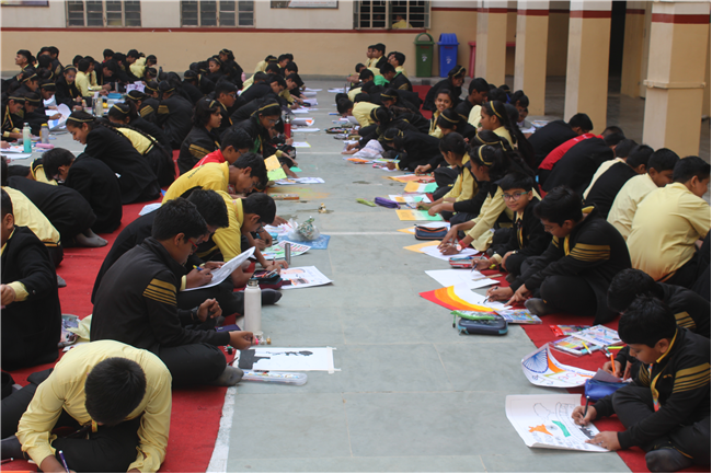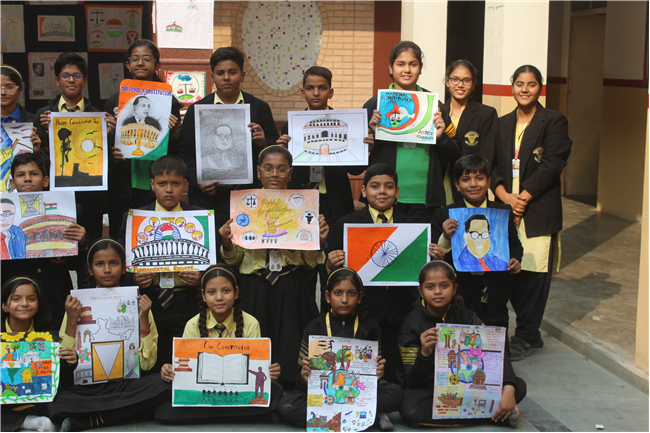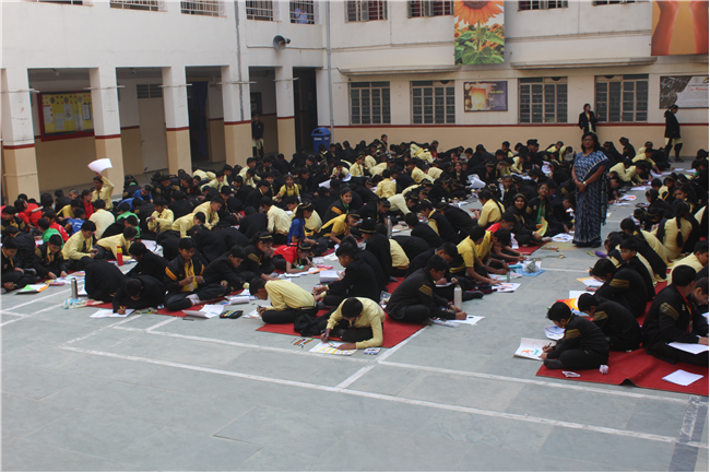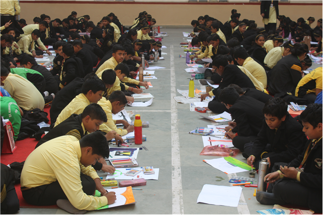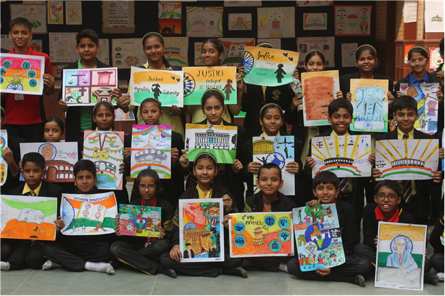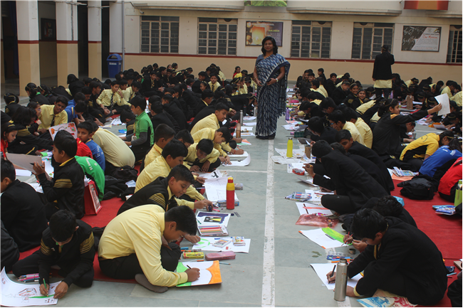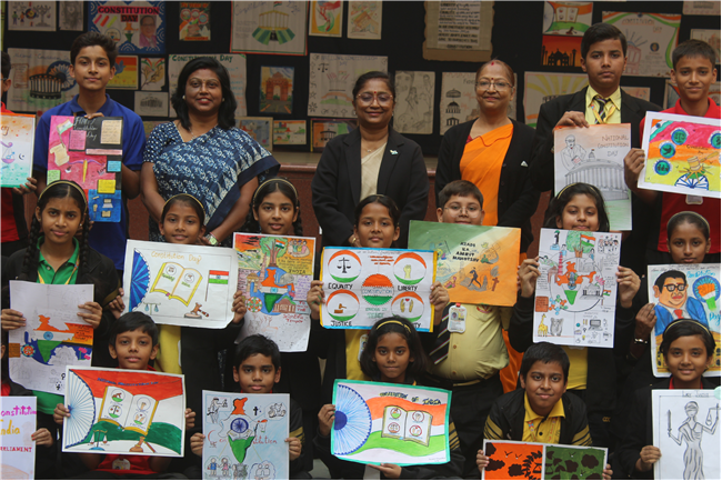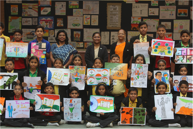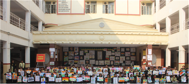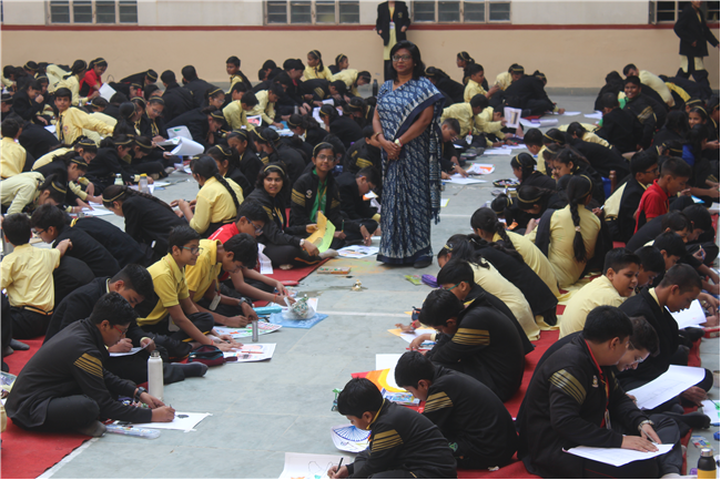 Description: A Painting Competition was organised on the eve of Constitution Day on 25th November, 2023 in St. Karen's High School at Quadrangle. Students from grades 6 to 8 showcased their creativity in the Constitution Day painting competition. The vibrant atmosphere in the quadrangle reflected their enthusiasm. The competition successfully engaged students, who came well-prepared with their materials, demonstrating their keen interest and awareness of the event.The event, complete with well-prepared participants and impressive stage decoration, was a celebration of talents at St. Karen's High School.