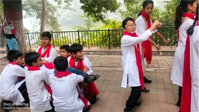 School picnic was organized for the students of Std.1 to 6 to Botanical garden. The main aim was to give the children a little exposure of how to move in a group independently outside when they represent the school.The students took a round of the zoo and had lunch together. The students of Std.4 and 5 presented a Nukkad natak and a little journalist of Std.5 took interviews of random people, asked questions related to the present education system. The children were very happy and enjoyed a lot.