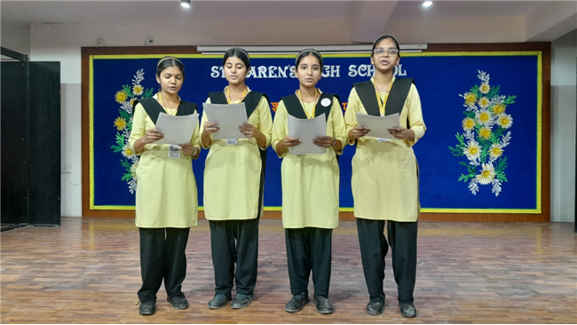 Description: Sanskrit Shlok Vachan Pratiyogita was organized on 1st December, 2023 at St. Karen’s High School. The students of Std.8 enthusiastically participated in the competition as they had got an opportunity to exhibit their talent and confidence. It was a spectacular show as the participants chanted the mantras in their sonorous voice. Winners are: 1st – Aditi Shishodhiya (8A) and Darshil Raj (8F). 2nd – Navjyoti Ojasvi (8H) and Aryan Garg (8J). 3rd – Anshika (8B) and Rudra Verma (8J).