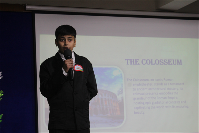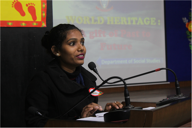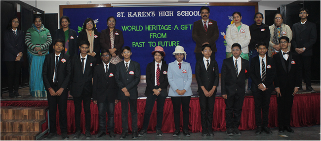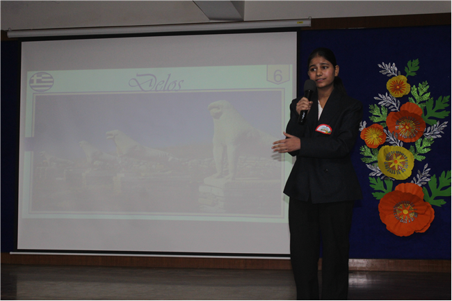 Description: An audio-visual presentation on the theme World Heritage -A Gift From Past to Present, was given by the students of std.6, 7 and 8. The programme was presented with lot of enthusiasm. Children took the audience to different countries to visit various UNESCO Heritage sites virtually. Overall, it was a unique and interesting programme held for the first time, which was appreciated by everyone including the judges.
