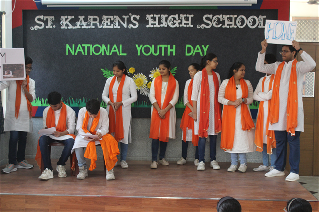 National Youth Day was celebrated on 20th January. The students of std 8 and 9 participated in Nukkad Natak highlighting the strengths of the Youth and also appealed to the society to understand them and help them live a life of their choice.They also participated in Poster making competition on this occasion.