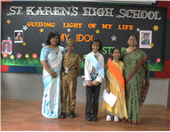 Description: On 3rd July 2024 St. Karen’s High School conducted a competition on the theme ‘GUIDING LIGHT OF MY LIFE- MY IDOL’. The participants were the students of std. 3. It was one of the most impactful activity where the children in the audience remained engaged and excited throughout the programme. The winners were- Swara Sharma (III-C) - 1ST Prize Navya Gupta (III-D) - 2nd Prize Shlok Srivastav (III-E) – 3rd Prize