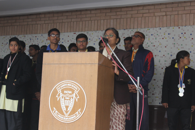 Description: A Proud moment to go down in the annals of St. Karen's High school as we stood overall champions in the 14th Sardar Patel Inter School Athletic Championship 2016 for the 13th consecutive year. The students were awarded appreciated for their effort. Once again today in the morning school assembly by Director Sir, Principal Ma'am, Vice Principal Ma'am and all the sports teachers.