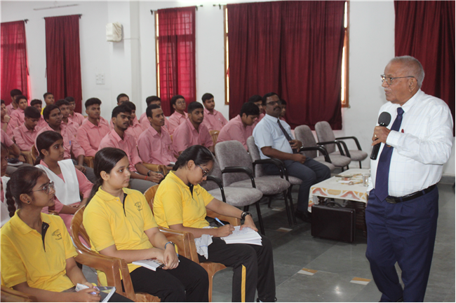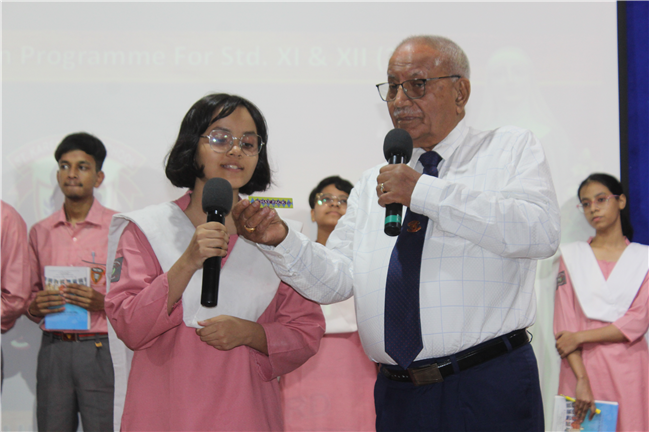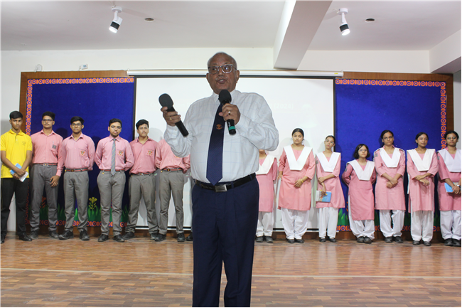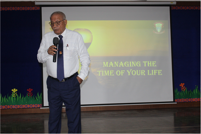 Description: A memorable and productive career counseling session was conducted by the Honorable Director, Mr. DP Galstaun, for the students of Class XI. The session began with the inspiring journey of Arnal Benett, underscoring the essence that "Time cannot be borrowed from tomorrow—it is the present moment that counts." Sir emphasised the crucial roles of physical and mental health in a student's life. The interactive session covered a wide range of topics, including social issues, personal goals, and effective time management. He reiterated the importance of combining talent with initiative, quoting, "Talent combined with initiative leads to success." The session left the students inspired and motivated, with a clearer understanding of the importance of time management, health, and initiative in achieving their personal and academic goals.