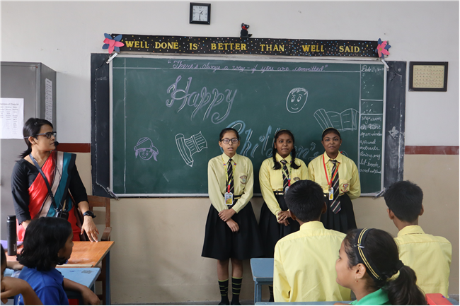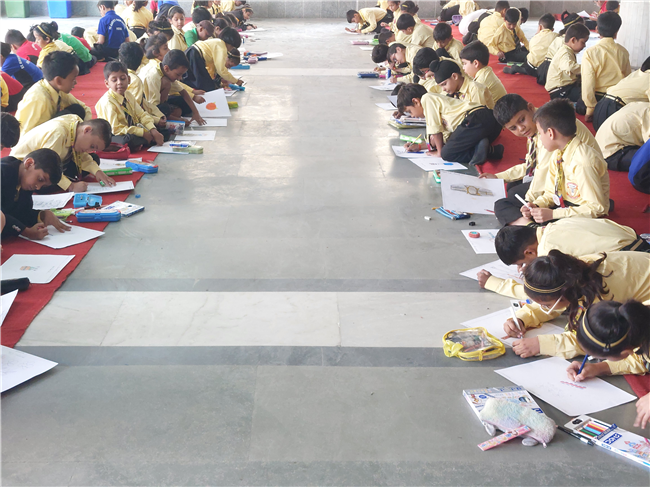 Description: The teachers of Std 1 to 5 conducted a combined morning assembly for their students, Children of Std 1 and 2 dressed up like Jawaharlal Nehru. The values of our first PM pandit Jawaharlal Nehru were conveyed to the children.To encourage children to dream big and aim high - To celebrate the uniqueness and individuality of each child. - Teachers performed songs and action dance. - Our children also put masks depicting the characters of Jungle book. The students of all the classes from Std 1 to 12 took part in a drawing competition organized by Ambedkar Khel Vihar, On the occasion of Children's Day. Students in their classes did different activities and played games
