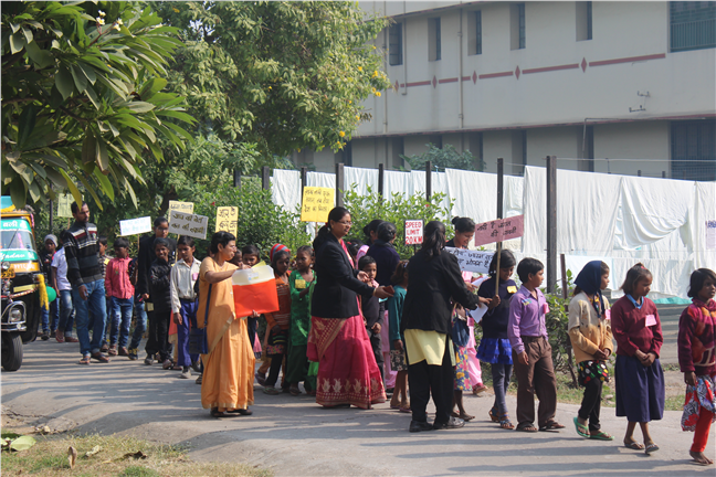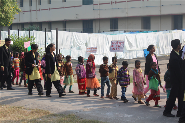 Description: The management of St.Karens High School organised a programme on the occasion of Children's Day at Holy Family, Kurji with the support of Sister Sophie. The event started with the slogan march followed by the lighting of the torch and a speech delivered by sister. Races like Frog race, Balloon Race and book balancing excited the children. It was an entertaining day for the children. Students like Aman Kashyap, Sakshi, Avi and Ishika shared their experience of the day. Children were given away prizes by Big Miss and Sharon Ma'am. The programme ended with a wholesome lunch.