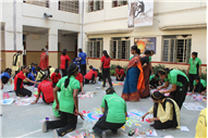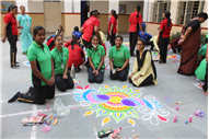Rangoli is a traditional art form that brightens up an occasion and is believed to be a harbinger of good luck. Beautiful patterns were created by Std. 9th and 10th on the floor using coloured rice, flowers and coloured sand.