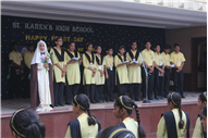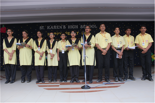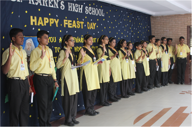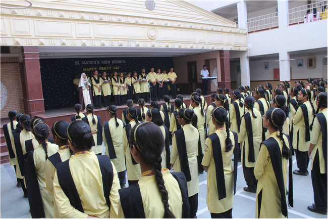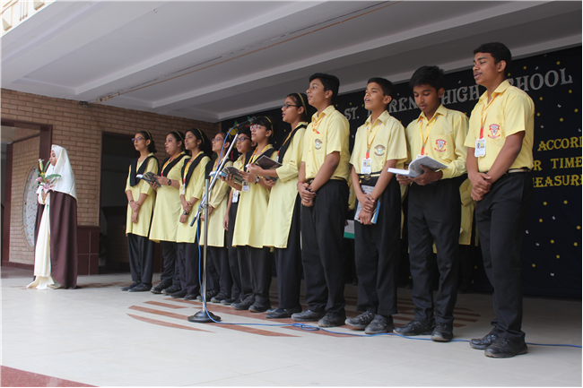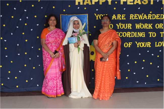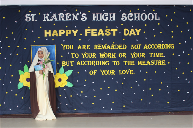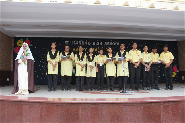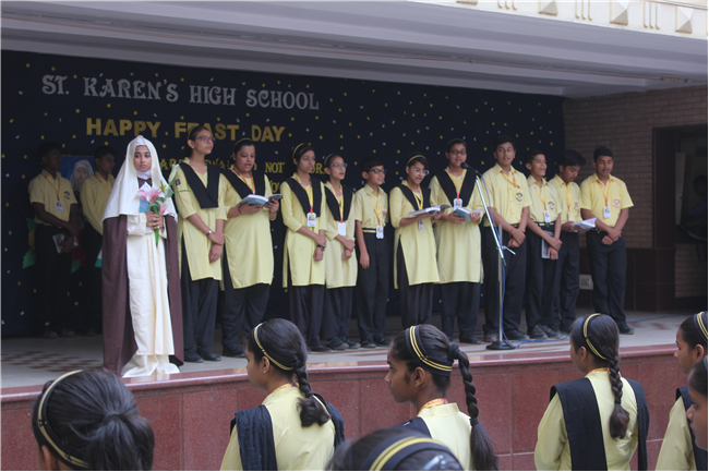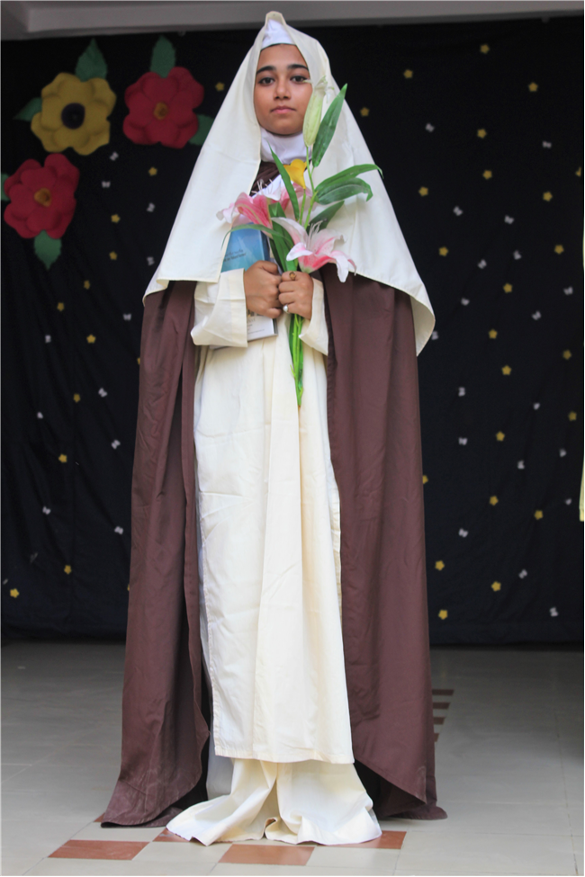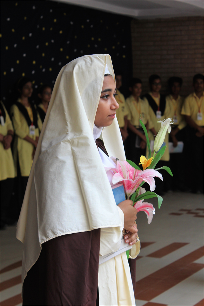 A fantastic and vibrant show was put on by students from grades 1 through 5 and grade 10 to commemorate the Feast Day. The event kicked off with the lighting of candles by the Principal and Vice-Principal. Students of Std. 1 & 2 were looking angelic dressed up in white & stood around the students who potrayed the character of St. Catherine. The program featured Bible readings, speeches on the Feast Day, a colorful welcome dance by the students from grades 4 and 5, a dance by the students from grade 2, and two choir songs performed by the choir group. The combination of all these performances made the program truly magnificent. All the students of the school participated in the feast day activity.