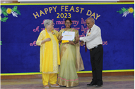 Description: St. Karen's High School celebrates 29th April as the Feast Day every year as it is the Feast Day of St. Katherine of Sienna, our patron saint. This year St. Karen's High School organised the Feast Day Celebration. The celebration began with a prayer song. Then a Holy Mass was held to invoke the blessing of the Almighty for the growth and development of St. Karen's fraternity. The choir presented some very melodious songs praising the Lord. The congregation of teachers across all branches of St. Karen's Family received blessings from the priests. Then the teachers across all branches were awarded under various categories for their dedication towards their work. A colourful programme was put up by the teachers of various branches to celebrate the event. The celebration ended with a feast in honour of St. Katherine.