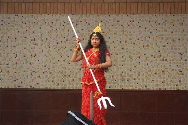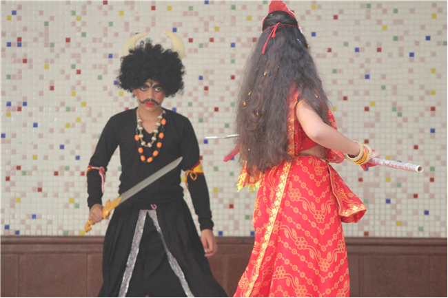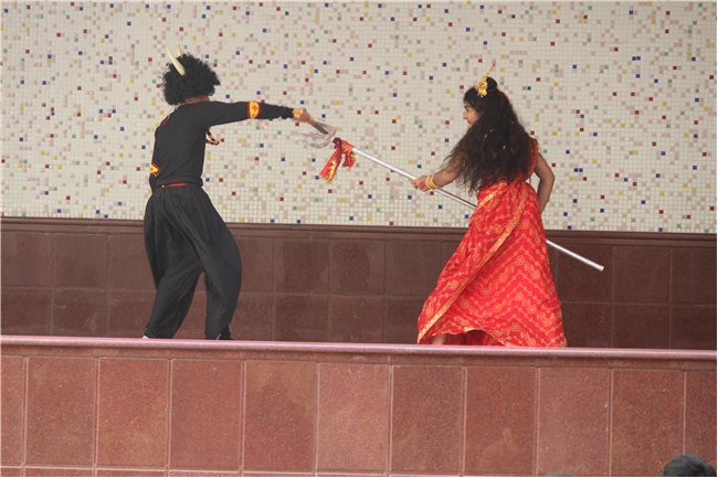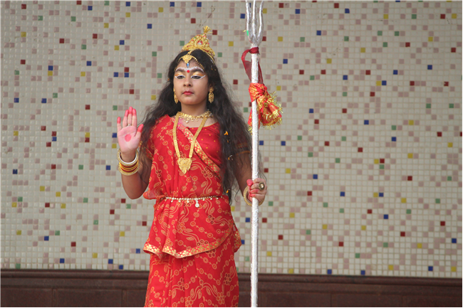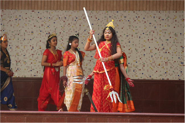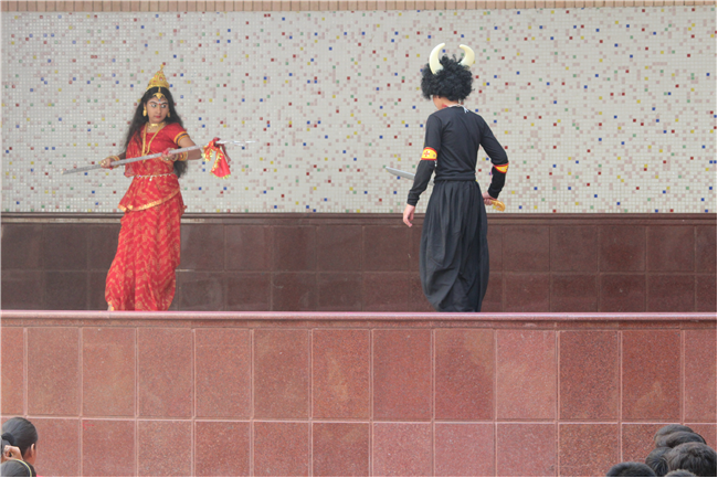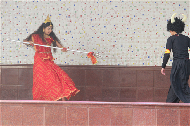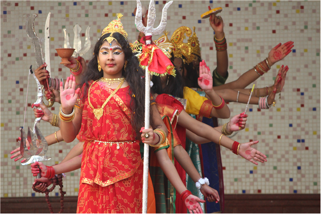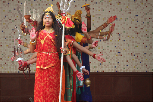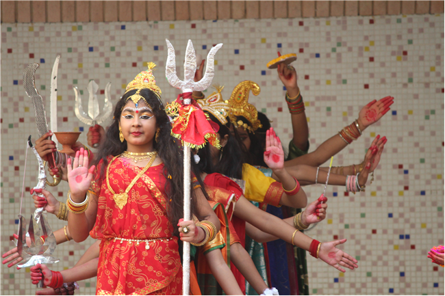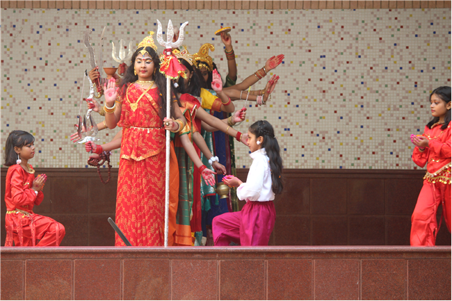Description: On October 18, 2023, the students of the primary wing put together a remarkable assembly centered around 'Durga Puja' in the school's quadrangle. The assembly commenced with a Sanskrit prayer song, followed by a Bengali prayer song and an outstanding speech on the theme. A mesmerizing dance performance by the children enthralled everyone . The assembly beautifully depicted the nine forms of Goddess Durga and the defeat of the demon Mahishasura. The costumes and makeup of the participants added a special charm to the program, making it truly unforgettable. The assembly had the honor of hosting special guests, including the Principal, Vice-principal, Senior coordinator, and Primary coordinator, who lauded the students' and teachers' hard work and dedication. The discipline and decorum maintained by the students during the assembly were truly commendable and deserving of recognition