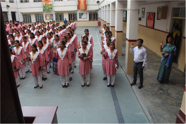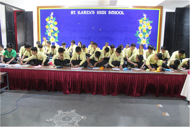 On 30th of September, all the students and staff of St. Karen’s High School took a pledge to maintain cleanliness and dedicate their services for the welfare of the country. They also took pledge to follow Gandhi’s values and teaching. This would be the best way to give tribute to the father of the nation on his 154th birth anniversary. On this occasion students from std.1 to 12 participated in various activities like painting, nukkad natak etc.