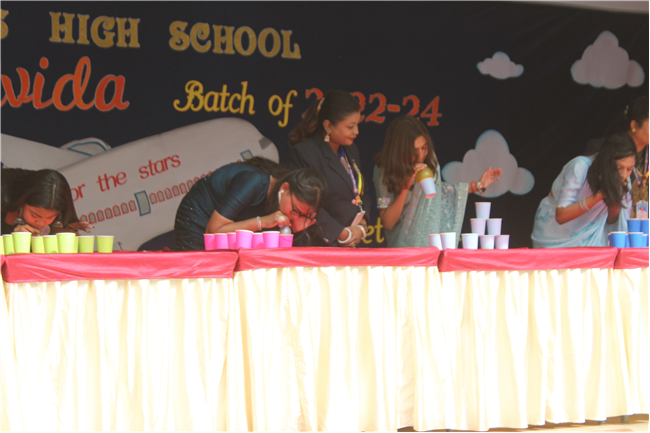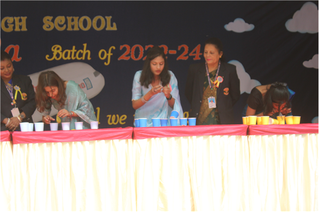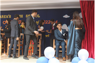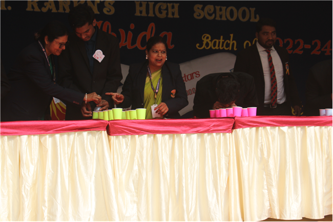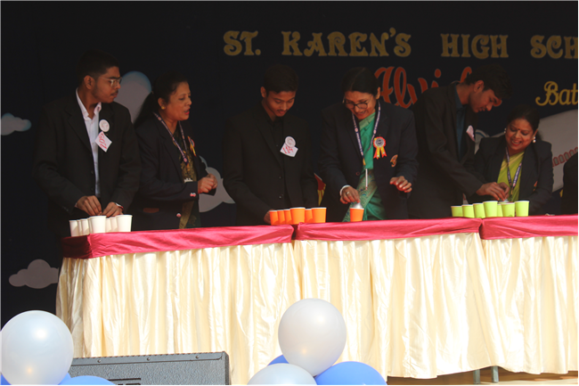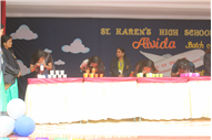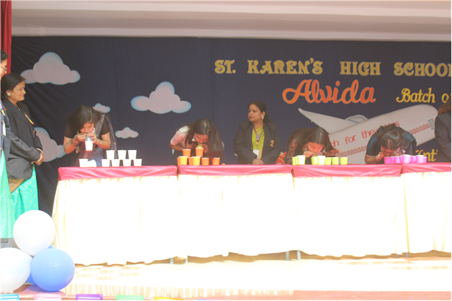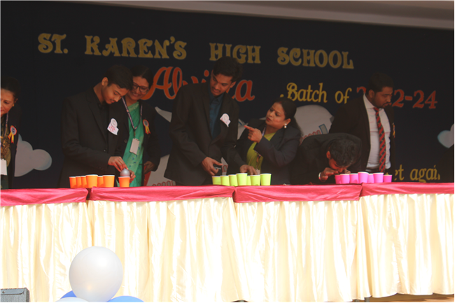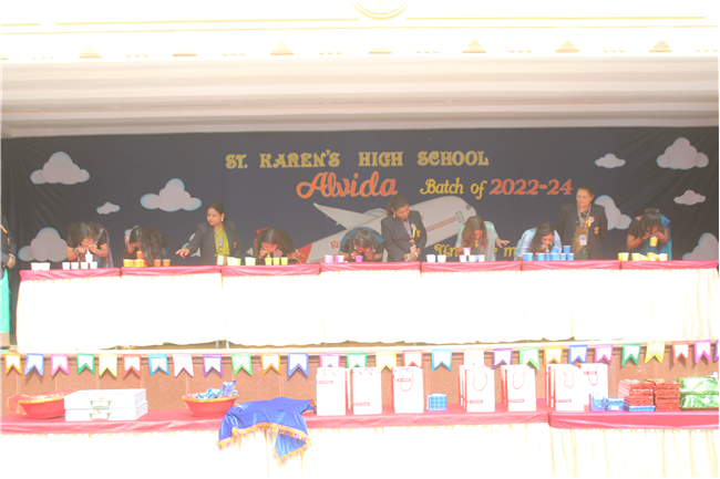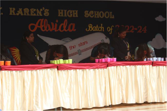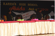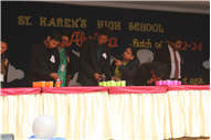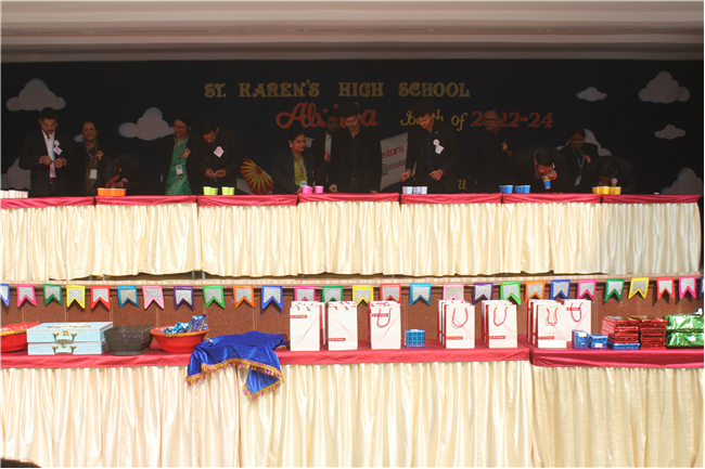 Description: "Cherishing memories, embracing futures – the Farewell Ceremony of STD 12 (Session2022-24) at St. Karen's High School on February 2, 2024, was a symphony of emotion and ambition." The students, draped in azure blue, were warmly welcomed by teachers, adorned with tilak. The event commenced with the ceremonial lamp lighting by Mr. D.P. Galstaun, the Director, and other dignitaries. Mr. Galstaun's words echoed the importance of ambition and perseverance, motivating students for their future endeavours. Mrs. Shefali Srivastava encouraged them to dream big, and Principal Mrs. Seema Singh emphasized the significance of relationships. The poignant moment of the outgoing batch handing over sashes to the Director added a emotional touch. Student speeches unfolded their academic journey, and games lightened the atmosphere. The succeeding batch stole the spotlight with dynamic dance performances, and the school band added musical vibrancy. Class teachers shared heartfelt class reports, and tearful farewells expressed gratitude. Awards were bestowed for academic excellence and attendance. The distribution of titles, including the best-dressed awards to Harsh Nandan and Ashtha Singh, and the crowning of Aditi Singh and Satyam Tripathi as Miss and Mr. Karenite, marked a memorable highlight. The ceremony concluded with students receiving blessings from teachers, encapsulating a beautiful ending to their school journey. "As we bid adieu, let the echoes of our journey resonate, and may our futures be as bright as the memories we leave behind."