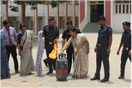 Description: A team from state disaster response force presented a mock drill, fire fighting exercises, post disaster response and management, first aid and handling injured victims etc. The audience were students council members, students of std 10, teachers and support staff.