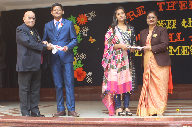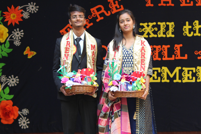 Description: “Though we are said to bid you farewell, you will be dearly missed. But we are also happy for you since there are bright opportunities waiting for you ahead’ Farewell for class XII students was organized on 25th January 2020 in the school campus. The day was a fiesta devoted to the years spent together with friends and teachers, to reminisce joyous moments. The students looked vibrant in their royal blue attire. The programme commenced with the lighting of the ceremonial lamp by Honourable Director Mr. D.P Galstaun, Principal Seema Singh, Principal of Secondary School Mary K Thomas, Vice principal Mrs. Anjana James and +2 in charge Mr. Jai Ram Prasad. The dignitaries addressed the students and motivated them with their inspiring speeches. Some students of standard XII also expressed their emotions by their heart-warming speeches. The students of class XI mesmerised all by their lovely dance performances. The cultural events progressed by the music performances, which enthralled the audience. The students of class XII were endowed with various titles to appreciate their talent and hard work. The most coveted award of Master and Miss Karenite went to Qamar Farooque and Riti Kumari respectively. The students were presented with beautiful mementos as a token of love to keep their school memories alive.