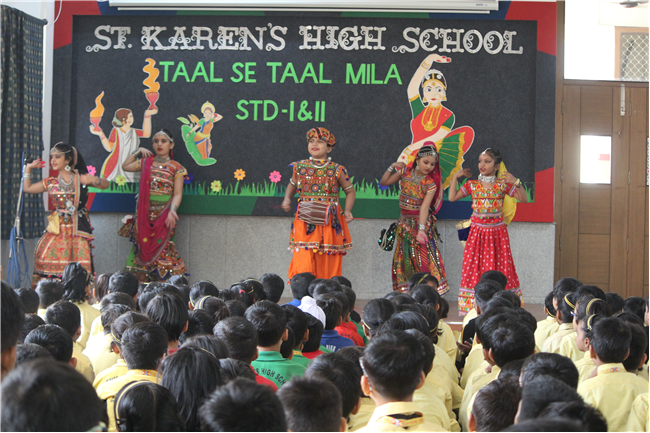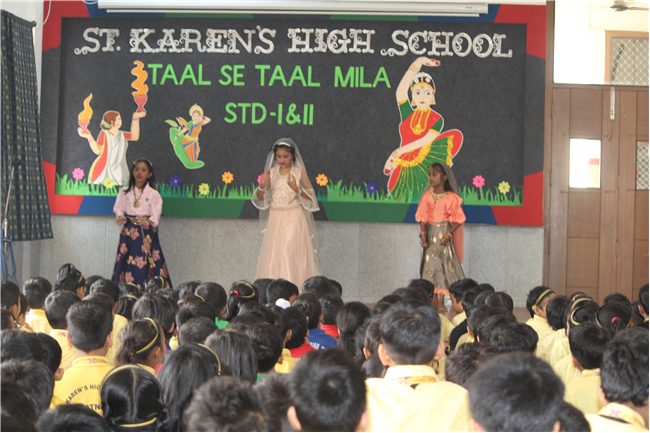 Folk dance competition was organized in St. Karen's High school on 8th November 2023 by students of standards 1 and 2. The stage came alive when the students of different sections staged spectacular dances in the competition. They mesmerized the audience with the performances based on the team ‘Tal Se Tal Mila’. The attractive costumes, fluid dance movements, and fascinating props made it tough for the judges to decide the winners. Our senior coordinator Subhadra Singh Ma'am and primary coordinator Sumita Guha Roy Ma'am appreciated our young dancers and motivated others to take part in such competitions. The program was concluded with a vote of thanks.