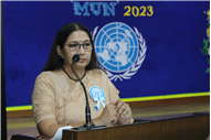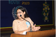 Description: The Pamela Hall resonated with voices of young leaders who resonated the views of different countries. The MUN inter branch competition was organised on 9th November, 2023. The competition was judged by Mrs. Priya Manish Kumar (Head of the Department of Journalism& Mass Communication at St. Xavier College of Management & Technology, Patna. Participant of different branches of St. Karen's School representing different countries debated on topic like “Cyber-Crime and Cyber War” and “cross border terrorism”. There were a total of 9 countries who debated on topic “cyber-crime, cyber war and cyber terrorism” in the first half. Then 5 countries were selected for the second round who debated on the topic “cross border terrorism”. There were two winners INDIA (represented by St. Karen’s High School), BHUTAN (represented by St. Karen’s Secondary School) who bagged the first position. In second position – AFGHANISTAN (represented by St. Karen’s High School). In third position – PAKISTAN (represented by St. Karen’s Secondary School). Two students of St. Karen’s Collegiate School bagged first and second prize for best positioning papers. The main purpose of conducting this competition was to make the students aware about the present problems and role of United Nation to deal with these problems.