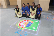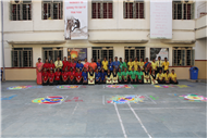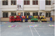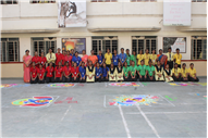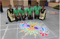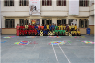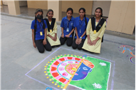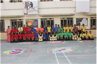Rangoli is a traditional art form that brightens up an occasion and is believed to be a harbinger of good luck. Beautiful patterns were created by Std. 9th and 10th on the floor using coloured rice, flowers and coloured sand.