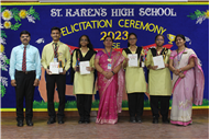 The meritorious students of Std. X and XII of St. Karen’s High School were felicitated on Friday, 19 May 2023 for their brilliant academic performance. These students brought laurels to the school. The function started with the lighting of the ceremonial lamp followed by dance performance by the students. Honourable Joint Director Mr.Edward Galstaun,Academic Director Mrs.Sharon Galstaun,Academic Supervisor Mrs.Shefali Srivastava and Principal,Mrs.Seema Singh encouraged the students. Their words were profound source of motivation for the students. The toppers of the school of class X and XII were felicitated for their exemplary performances and were awarded with momentos and certificates.