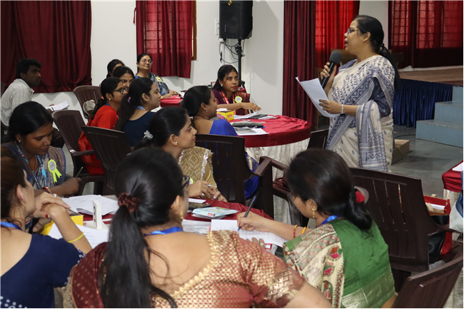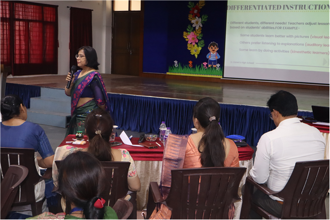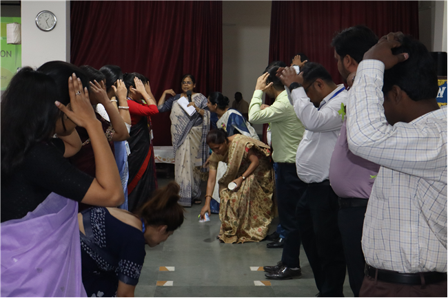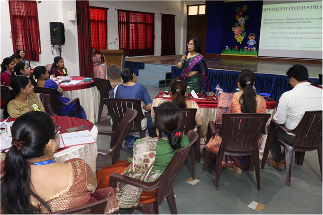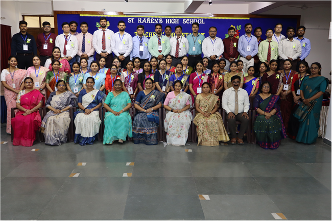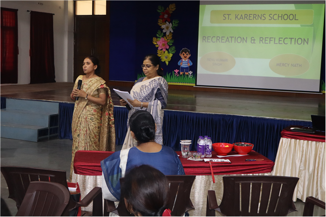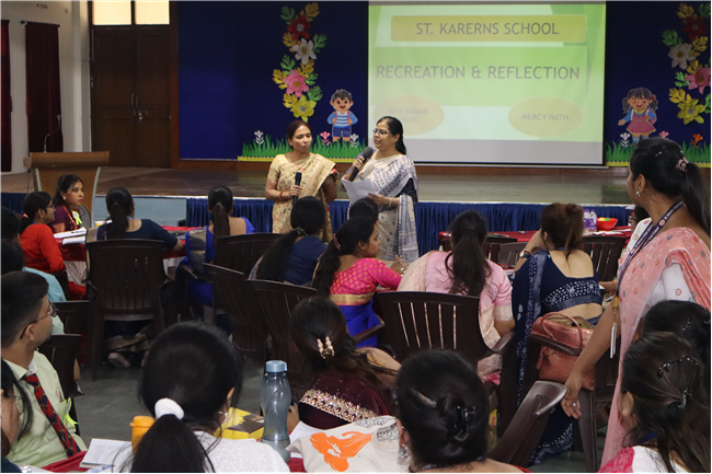 Description: An orientation programme for 50 newly appointed teachers from different branches of the St. Karen’s Group of Schools was conducted in Pamela Hall at St. Karen's High School. The sessions were led by Academic Director Sharon Galstaun Ma’am, Supervisor of Schools Shefali Srivastava Ma’am, Vice Principals, and Coordinators from various branches. The programme covered key topics such as St. Karen's ideologies, team building, school innovative practices, teaching methods and strategies, and the responsibilities of class teachers. Principal Seema Singh delivered the inaugural address, setting the tone for an enriching session. The programme concluded with engaging recreational activities and a reflection session. The teachers found the orientation insightful and beneficial, equipping them with valuable knowledge and skills for their journey ahead.