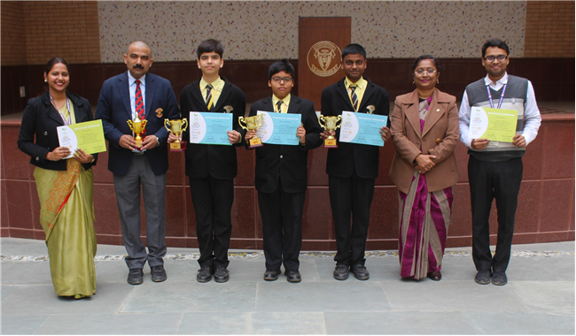 In the seniors category, St. karen’s High School was represented by Ambar Sinha (9J) and Aaryan (9G). They not only topped the prelims but also emerged victorious and won the first prize by a huge point difference. They were awarded with trophies, medals, certificates and a cash prize of Rs. 8000.