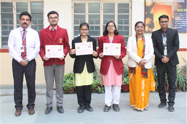 Hindi speech competition was held in Mahila Charkha Samiti Vidyalya on the 1st of December 2022. The students of classes eight and nine participated with great enthusiasm. We are glad to announce that St. Karen's High school won in both the categories. Shreya Kumar of class 8I won the first prize in the junior category and Om Kumar singh of class 9J won consolation prize in the senior category.