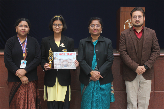 An ‘Inter School Speech Contest’ was organized by Gyan Niketan on 10th December 2022. The competition was in two categories. Anushka of class 8 won the first prize in Junior Category.