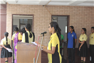 Description: The grand occasion of council members ceremony took place on 7th July, 2017. Badges were handed over for the different posts to take care of the school disciple. The council members team was formed from the students of class – 5 and the monitor badges were given to the monitors of Std 6,7,8,9 and 10 by their respective class teachers during the morning assembly.The ceremony was presided by the Principal Mrs. Seema Singh and Vice Principal Mrs. Anjana James. It ended with an oath taking.