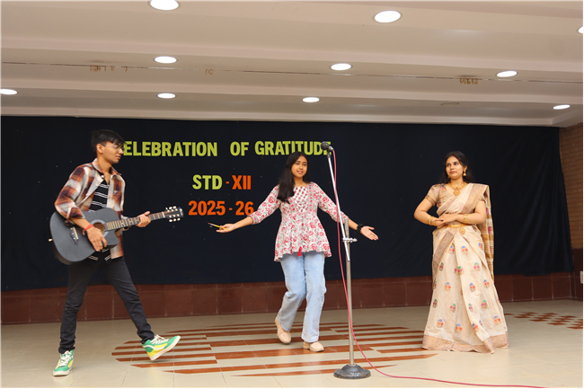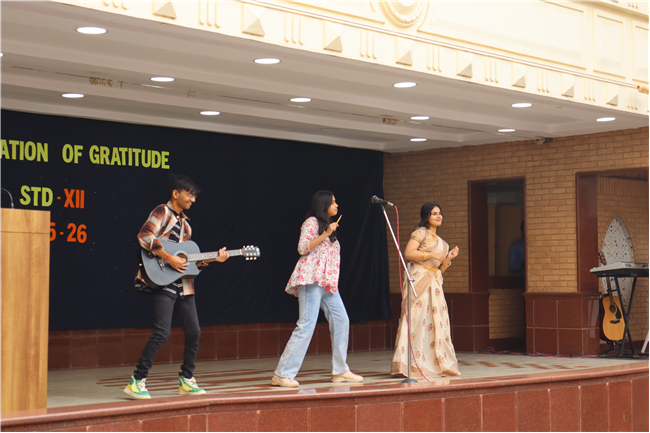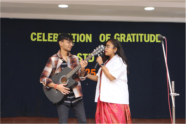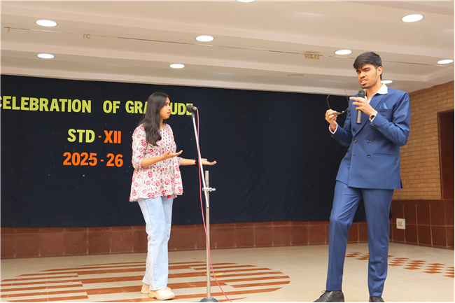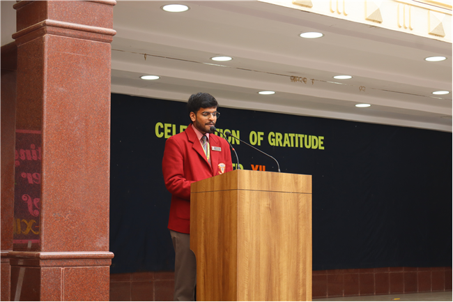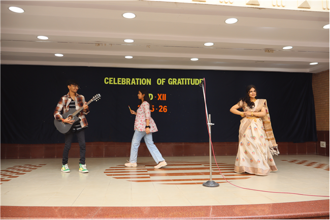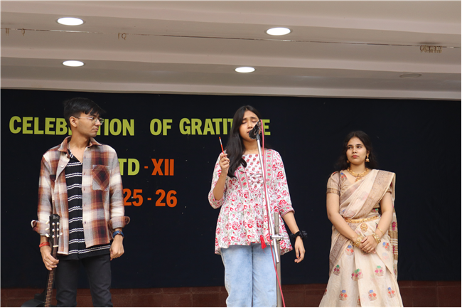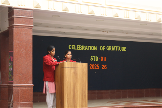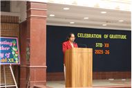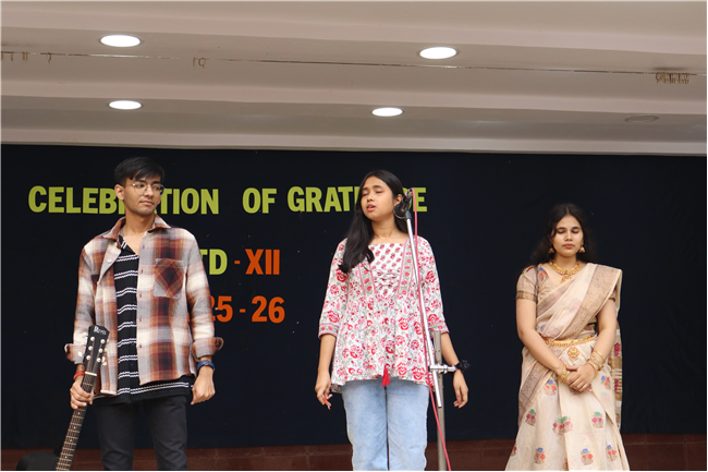 The Symphony of Thanks assembly was conducted by the Class 12 students of all streams, uniting the school as one family through a shared spirit of gratitude. The programme began with a graceful Odissi welcome dance, followed by insightful speeches from the Science, Commerce, and Humanities streams. A meaningful and well-executed act conveyed the importance of allowing children the freedom to choose their own careers rather than being pressured into family professions. The Cultural Captain’s Hindi poem added emotional depth, after which the Head Boy and Head Girl expressed their heartfelt appreciation. The Principal Ma’am concluded the event with an inspiring address, reminding students of their journey, responsibilities, and growth. The students also presented a token of appreciation for every moment spent in school and encouraged their juniors to carry forward the laughter, values, and friendships that uphold the school’s legacy.