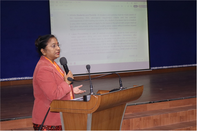An orientation session for the parents and students of Std. X (Sections A–E) was conducted on 03 December 2025 at Pamella Hall, where the Principal and Vice Principal shared detailed information regarding the two CBSE Board Examinations for Class 10. The session covered all essential guidelines, followed by an interactive question-and-answer segment involving both parents and students. Additionally, practical tips were provided to parents on how they could meaningfully support and contribute to their wards’ preparation, enabling them to appear for the Board Examinations with confidence and without stress. Several parents expressed their appreciation to the school for the valuable guidance and timely updates.